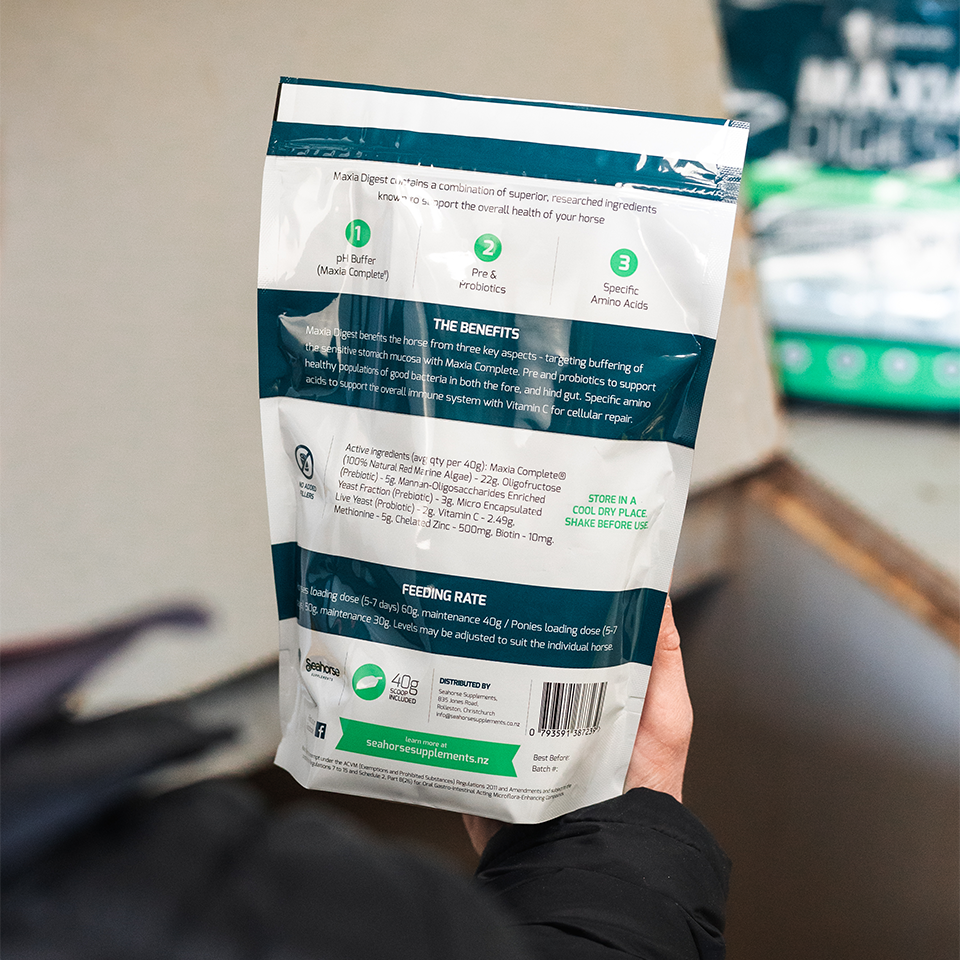 "Maxia Digest was a huge turning point for my hot, sensitive, ulcer prone mare. I have now got a rideable, sensible horse who reacts well to stress and grass flushes."